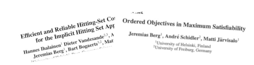 I am glad to report that my papers “Ordered Objectives in Maximum Satisfiability”, and “Efficient and Reliable Hitting-Set Computations